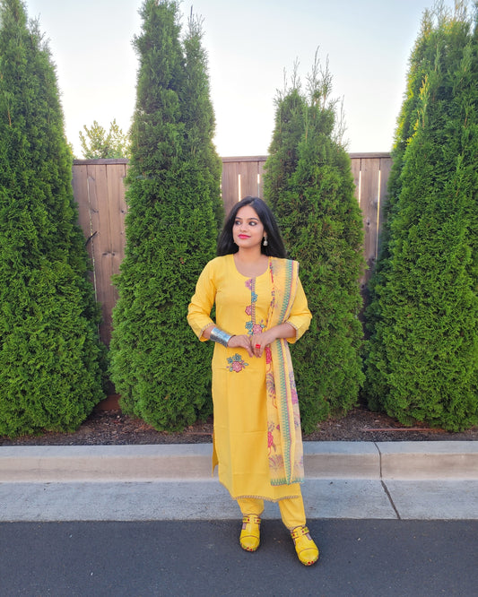 0ffira pure cotton straight kurta slim pants with printed dupatta set