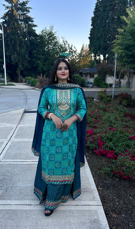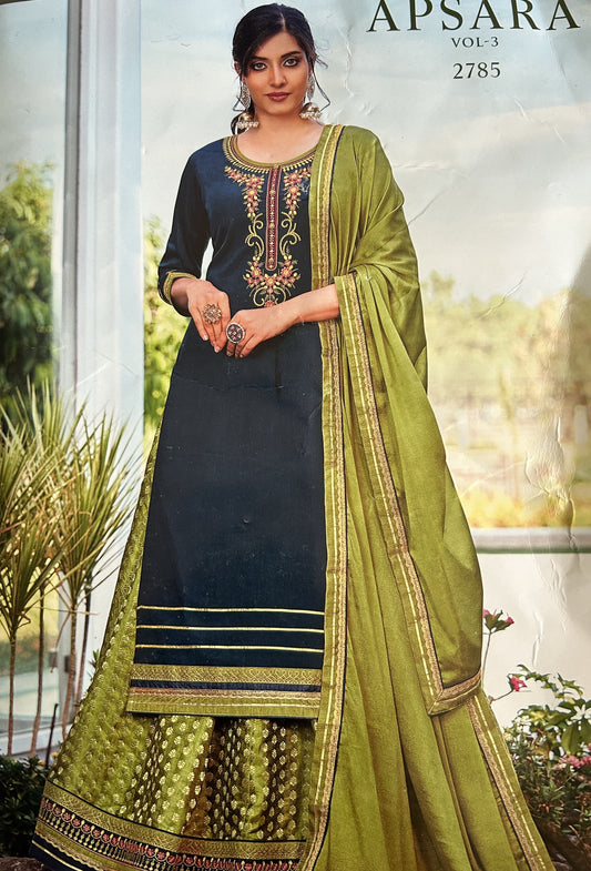 Apsara A line rayon kurta with silk skirt and Dupatta
